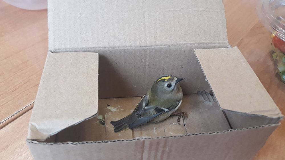 Następne zgłoszenie dotyczyło młodych gołębi na balkonie w mieszkaniu na jednym z osiedli w Zielonej Górze. Okazało się, że dwa młode ptaki pozostały bez opieki. Od kilku dni nie przylatywała do nich para, która wcześniej wysiadywała jaja. Gołębie także trafiły pod opiekę Ośrodka Rehabilitacji dla Zwierząt Dziko Żyjących. Do straży miejskiej został także przyniesiony mały ptak w kartonie. Według zgłoszenia ptak znajdował się w budynku i nie był w stanie latać. Strażnicy stwierdzili, ze w kartonie znajduje się mysikrólik. Ptak dostał wody. Po krótkiej chwili okazało się, że nic mu nie dolega dlatego został wypuszczony na wolność.