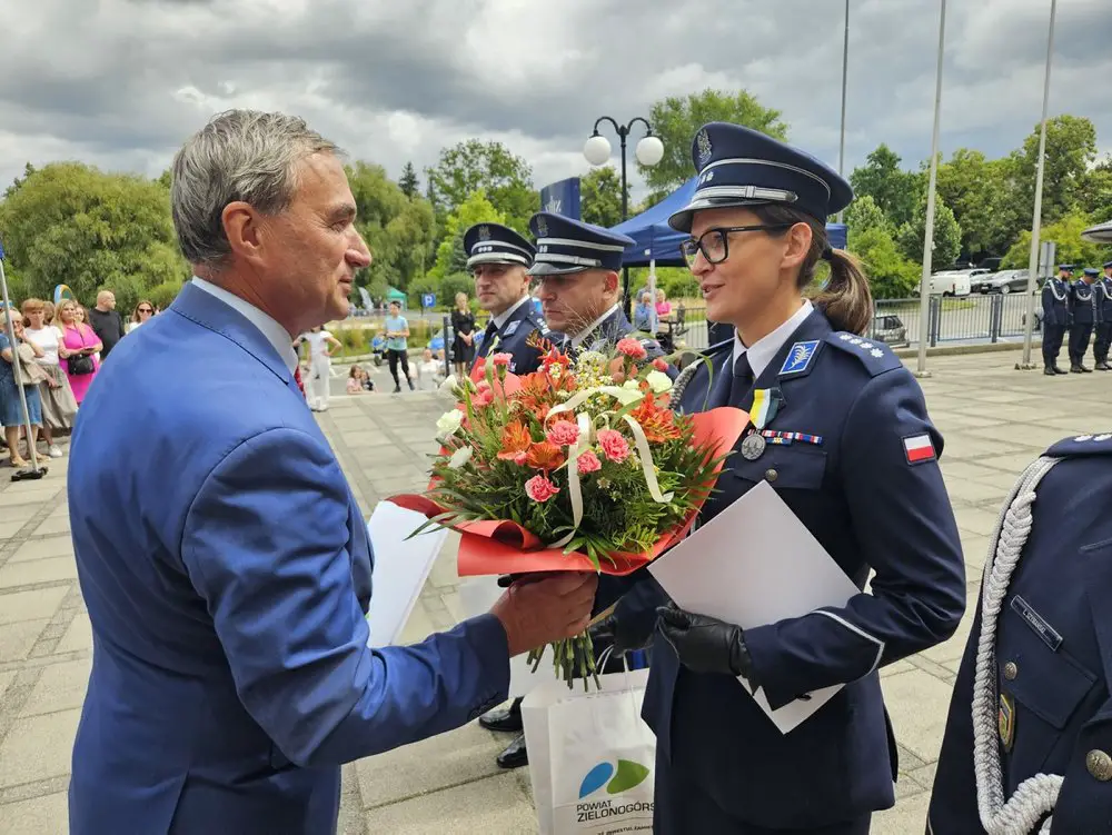 Obchody Święta Policji odbyły się w czwartek, 17 lipca, na placu przed Komendą Miejską Policji w Zielonej Górze. Podczas uroczystości komendant wojewódzki insp. Jerzy Czebreszuk w towarzystwie komendanta miejskiego mł. insp. Tomasza Szudy wręczył policjantkom i policjantom awanse na wyższe stopnie. W swoim przemówieniu komendant Szuda podziękował wszystkim policjantkom oraz policjantom za ich ciężką i odpowiedzialną służbę, za narażanie własnego życia czy zdrowia dla ochrony życia i zdrowia innych. Podziękował również pracownikom policji za ich trud i wkład, który nierozerwalnie wiąże się ze służbą policyjną, natomiast samorządowcom i obecnym na uroczystości gościom podziękował za całoroczne wsparcie.