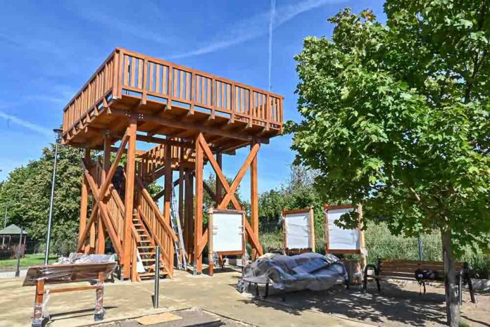 Na tyłach Domu Pomocy Społecznej przy al. Słowackiego stoi już drewniany taras widokowy. Ma pięć metrów wysokości, jest wykonany z drewna modrzewiowego. I dobrze komponuje się z otoczeniem. Uwaga, taras nie jest jeszcze dostępny dla mieszkańców. Odbiory techniczne potrwają parę tygodni. Powinny skończyć się jeszcze jesienią. Na taras będzie prowadziło osobne wejście z tyłu, ze ścieżki odchodzącej od al. Słowackiego. Wszystko po to, by nie przeszkadzać pensjonariuszom DPS-u.