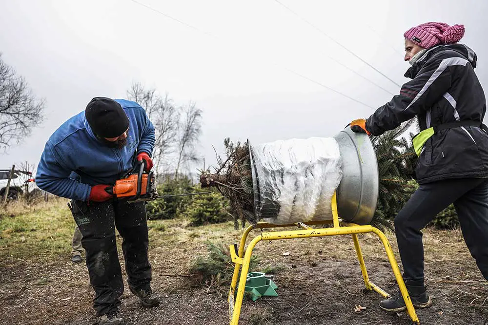 Choinka bez względu na wielkość jest w jednej cenie 50 zł. Obsługa przygotuje również pień choinki pod montaż w stojaku. Warto więc zabrać ze sobą stojak.
