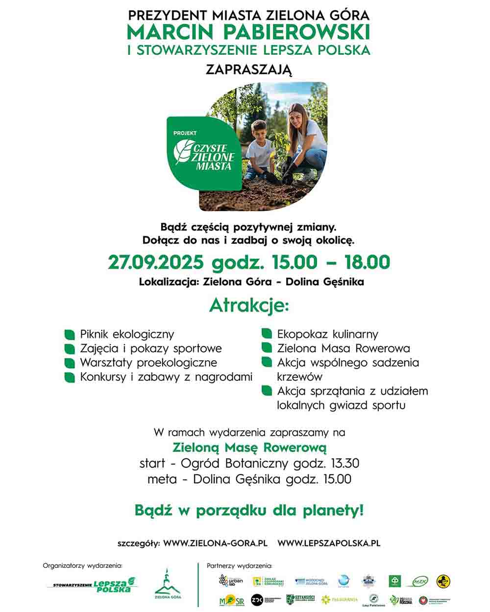 Przygotujcie się na ekologiczne szaleństwo. W sobotę, 27 września, Dolina Gęśnika zamieni się w centrum zabawy, edukacji i integracji w ramach akcji „Czyste, Zielone Miasta”. Dojedzie tam Zielona Masa Rowerowa.