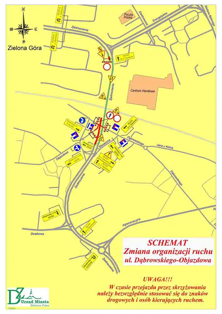 Zielonogórski magistrat informuje, że w celu przyspieszenia prac nad przebudową wiaduktu zachodniego Zjednoczenia, przejazd pod wiaduktem ul. Gen. Jarosława Dąbrowskiego będzie zamknięty do końca lipca 2025 r.