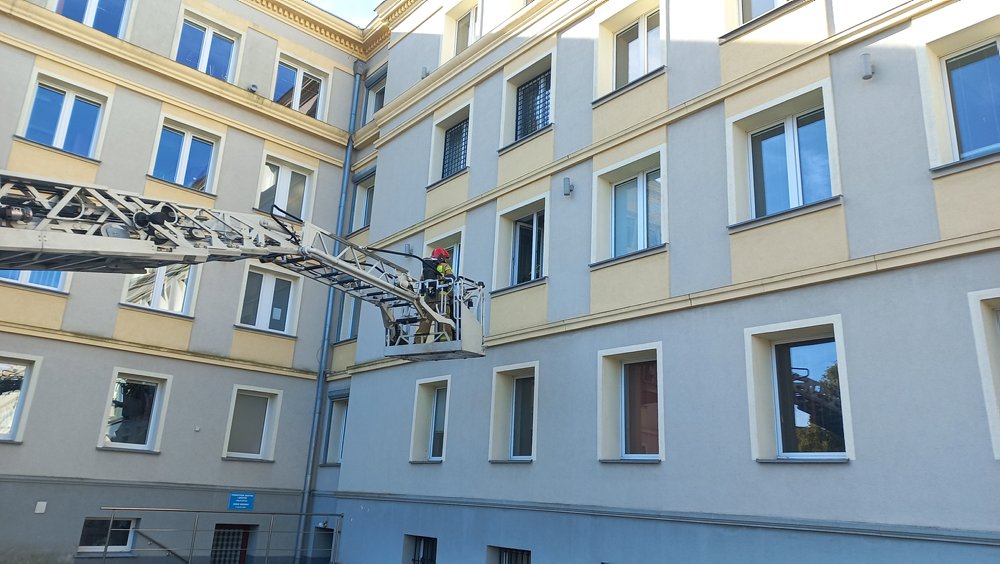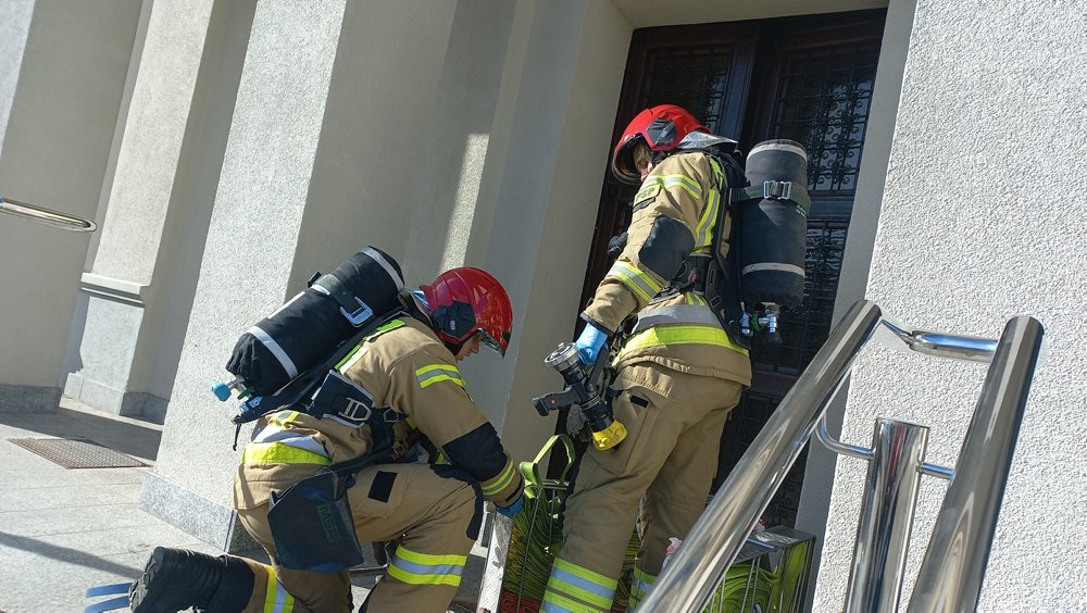 Pożar w komendzie miejskiej policji w Zielonej Górze? Tak ale w formie ćwiczeń przeprowadzonych z zielonogórska strażą pożarną.