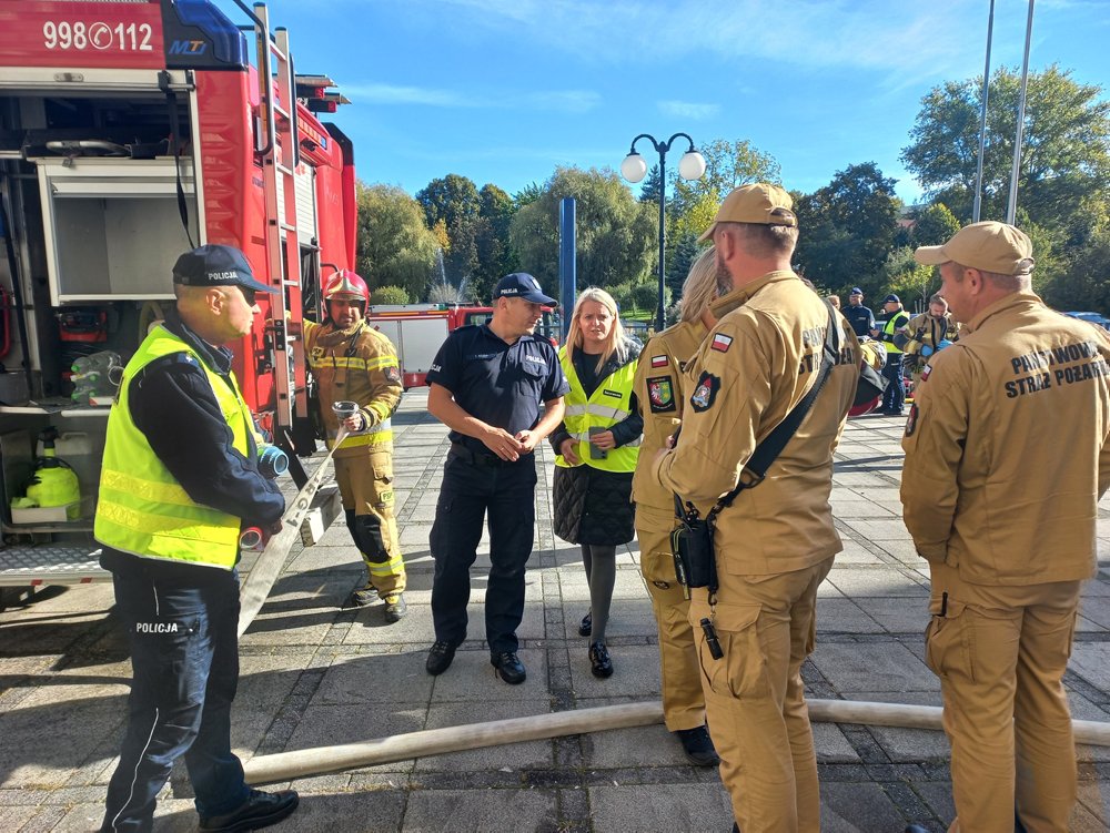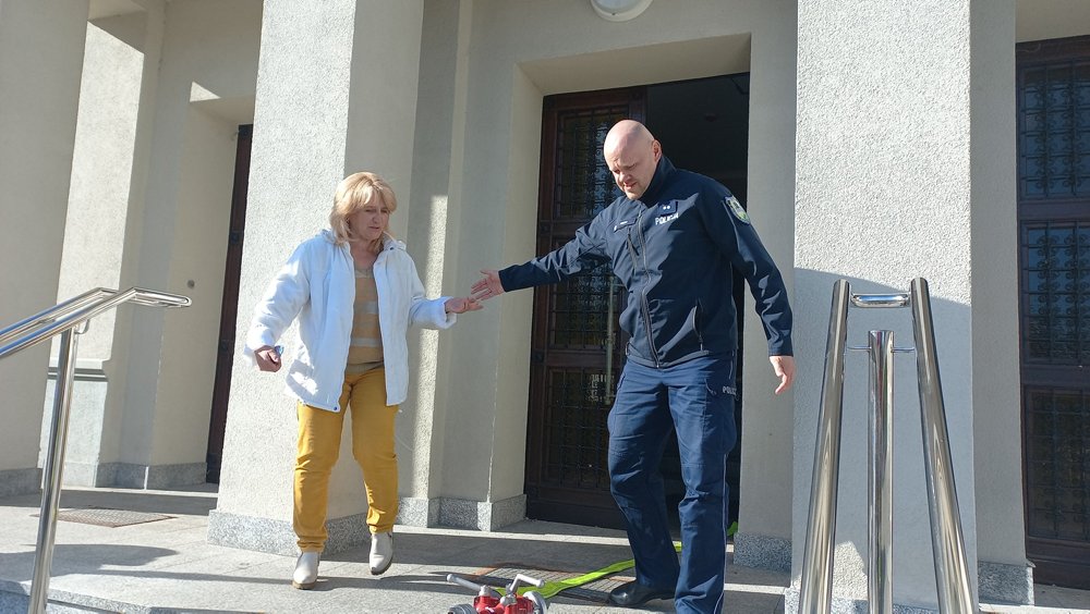 Pod komendą zjawiły się wozy strażaków na sygnałach i zaczęło się szkoleniowe gaszenie pożaru oraz ewakuacja pracowników komendy i policjantów. Wszystko poszło gładko i sprawnie. – Takie szkolenia pozwalają nam działać pewnie i skutecznie, gdy zagrożenie stanie się realne. W razie prawdziwego pożaru każdy musi wiedzieć, co robić i jak chronić siebie i innych – wyjaśnia podinsp. Stanisławska.