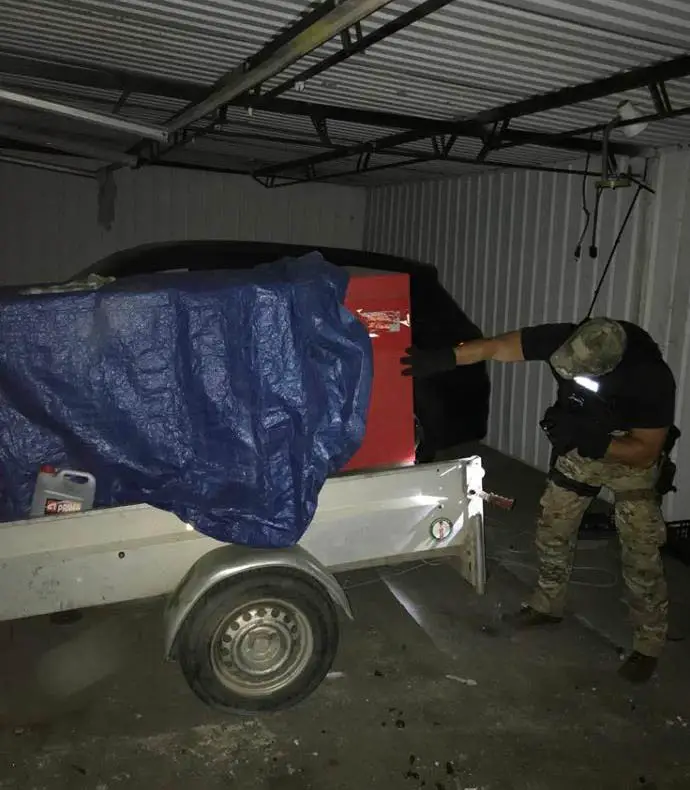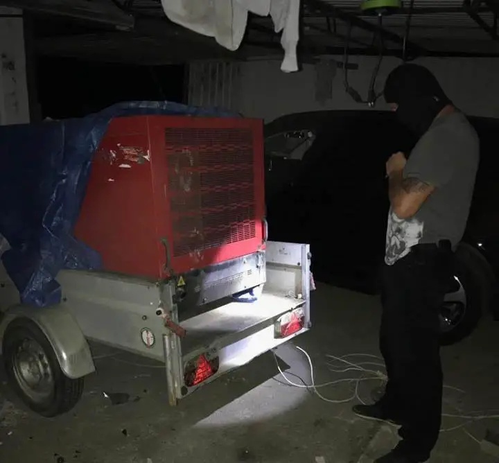 W garażu funkcjonariusze znaleźli przyczepkę samochodową wraz z agregatem prądotwórczym Po sprawdzeniu okazało się, że także przyczepa i agregat są kradzione.
