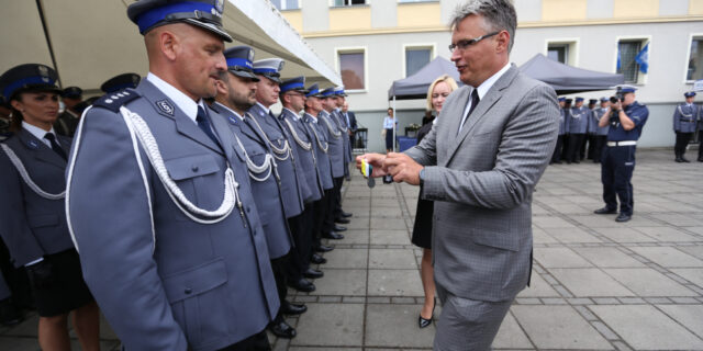 Na zielonogórskie uroczystości przybył wojewoda lubuski Władysław Dajczak, który w towarzystwie p.o. komendanta wojewódzkiego policji insp. Krzysztofa Sidorowicza i w asyście komendanta miejskiego policji mł. insp. Jarosława Tchorowskiego wręczył policjantom awanse na wyższe stopnie. Wojewoda z tej okazji wręczył mł. insp. Tchorowskiemu kluczyki do najnowszego radiowozu bmw z wideorejestratorem, który już od jutra będzie patrolował drogi powiatu zielonogórskiego. Radiowóz został zakupiony w ramach projektu Komendy Głównej Policji „Bezpieczeństwo na drogach – nowoczesny sprzęt dla Policji Polskiej”, realizowanego ze środków programu operacyjnego Infrastruktura i Środowisko.