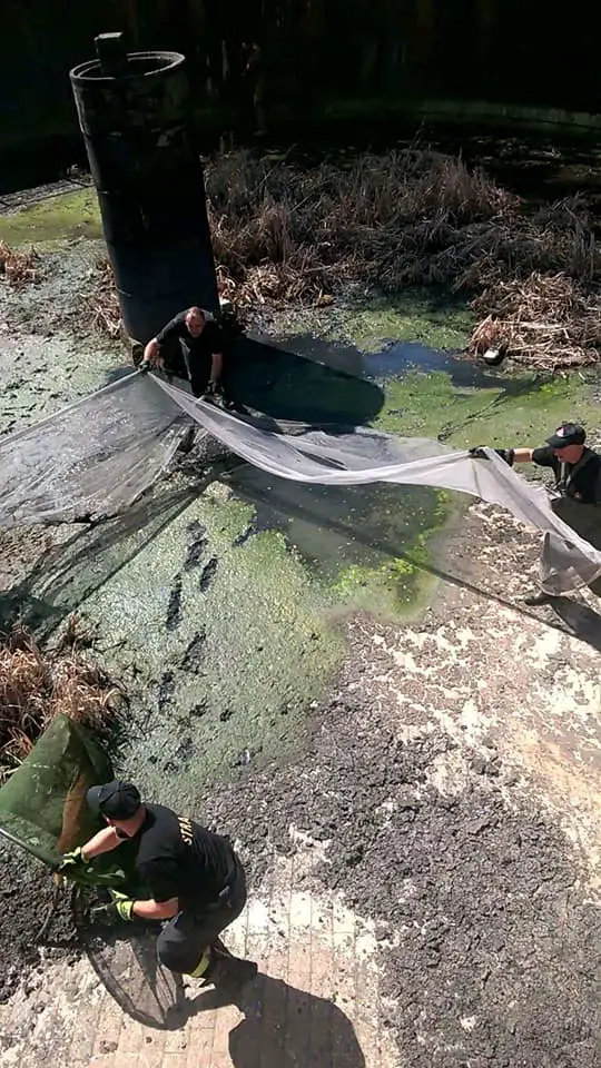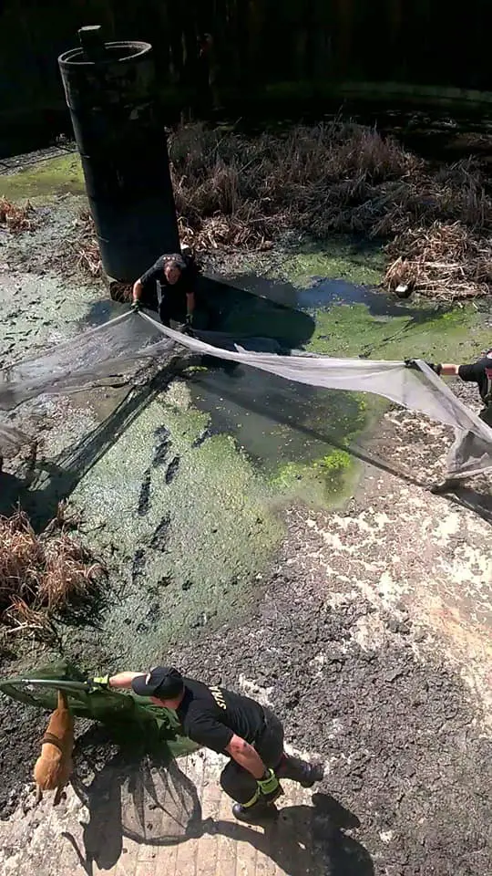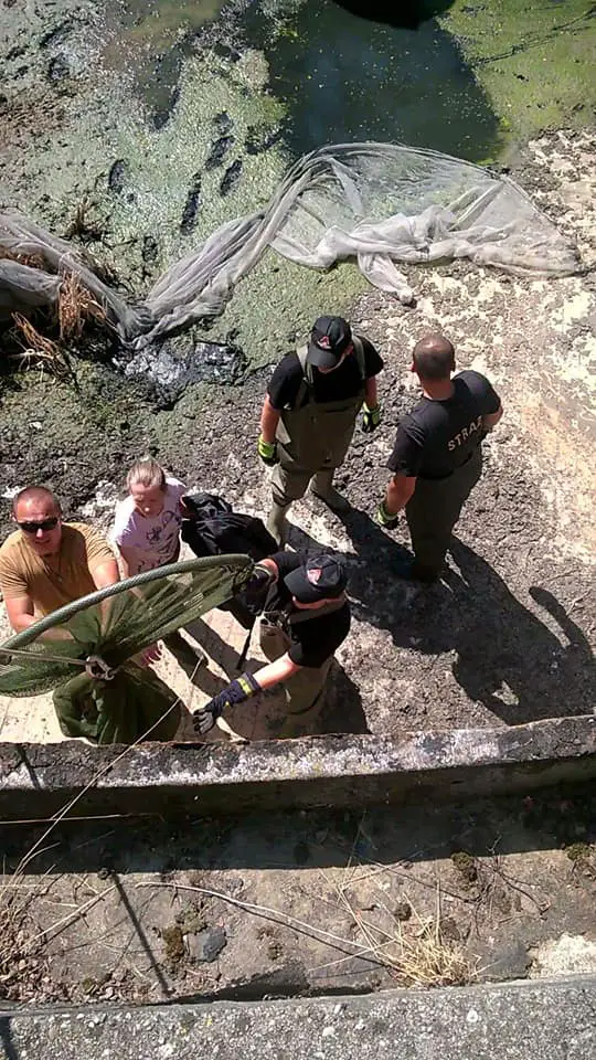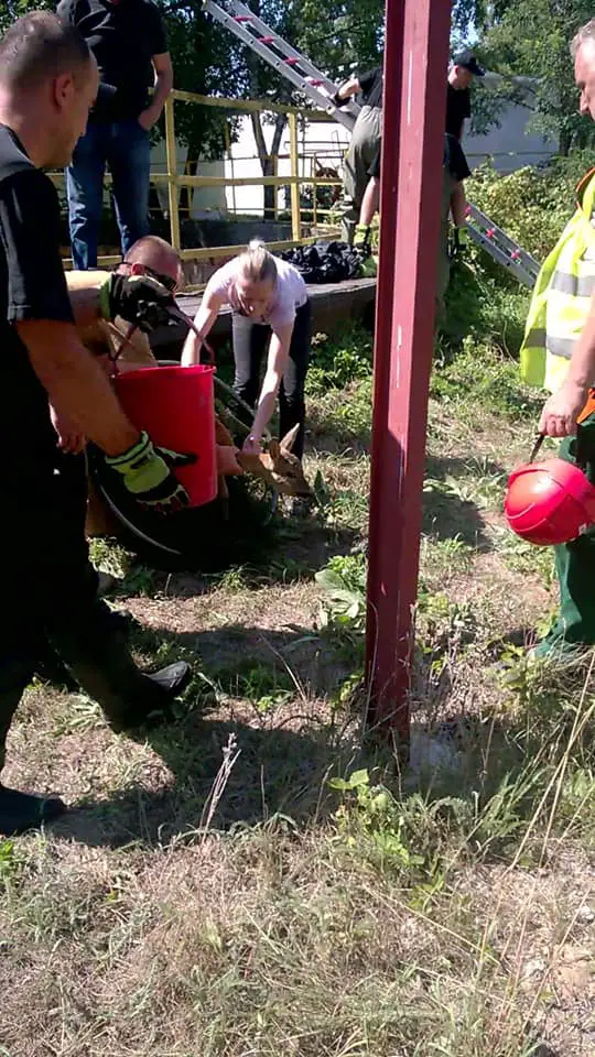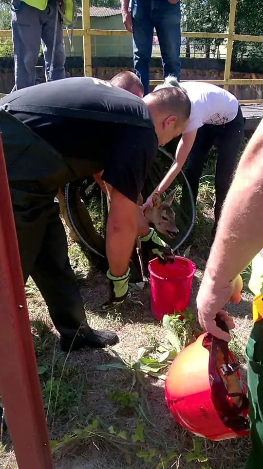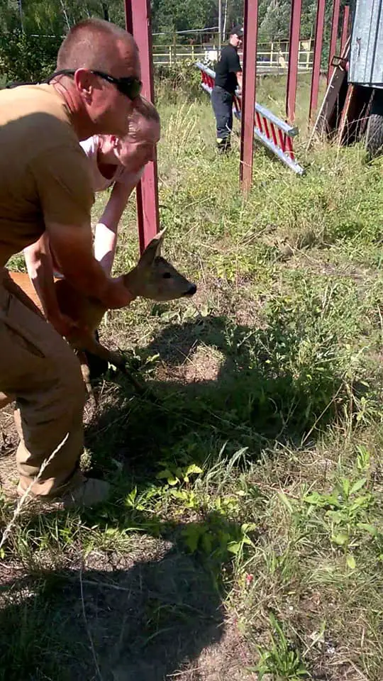 Wcześniej strażacy ratowali sarnę, która nieszczęśliwie wpadła do basenu. Czekała ją tam pewna śmierć. Nie byłaby w stanie samodzielnie wyjść z głębokiego zbiornika. Udało się. Strażacy złapali sarnę i oddali w dobre ręce. Dziś z pewnością biega już po lasach.