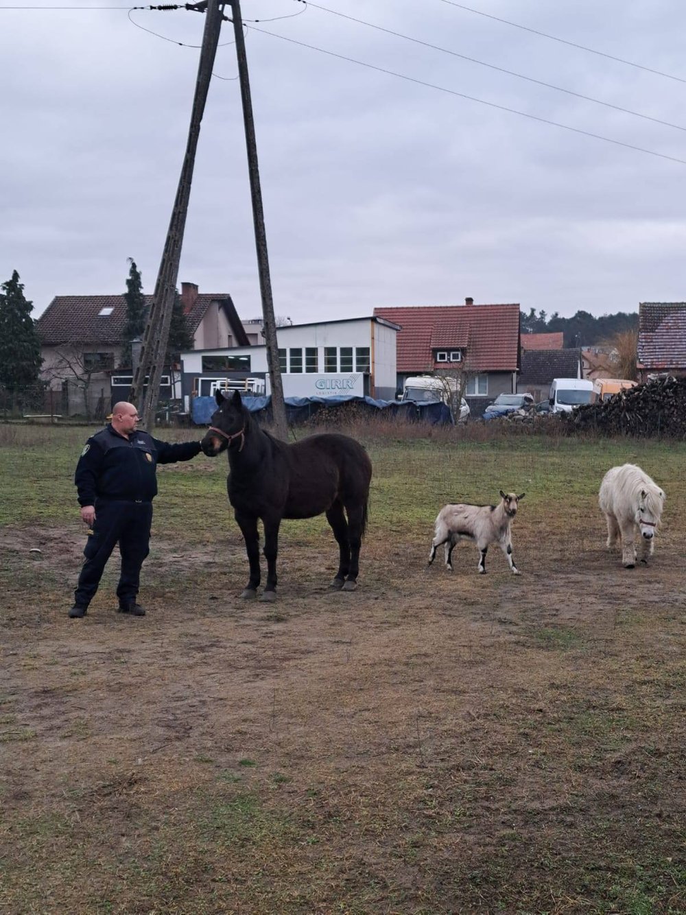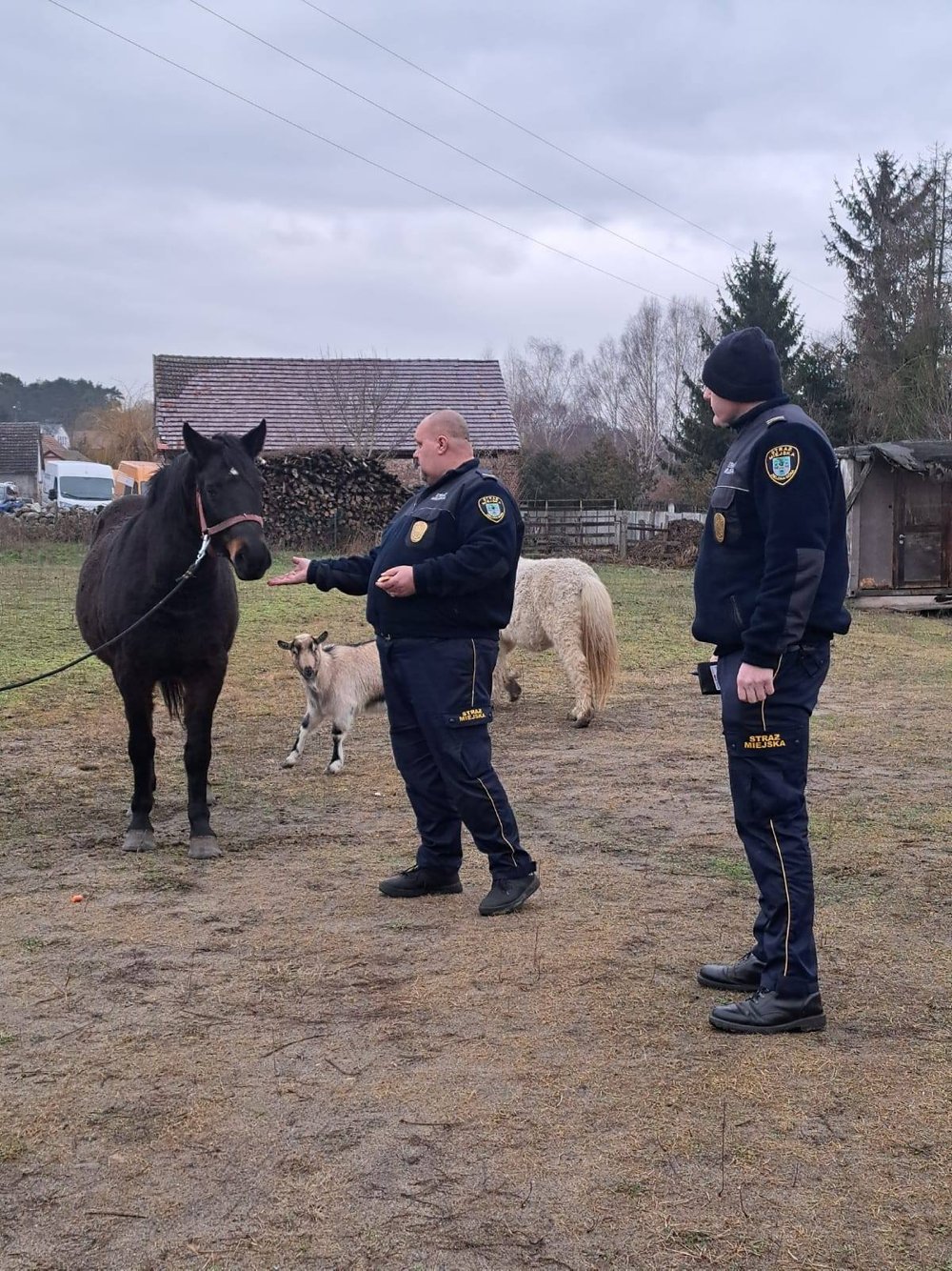 Na miejscu funkcjonariusze straży miejskiej potwierdzili, że na otwartym terenie znajdują się dwa konie, kuc oraz koza, nad którymi nikt nie sprawuje opieki. Szybko udało się ustalić właściciela zwierząt, który za niezachowanie ostrożności przy trzymaniu zwierząt został na miejscu rozliczony. Mężczyzna zdawał sobie sprawę, z tego, że zwierzęta wydostają się z posesji. Interweniującym strażnikom udało się schwytać zwierzęta oraz doprowadzić i zabezpieczyć je na terenie gospodarstwa.