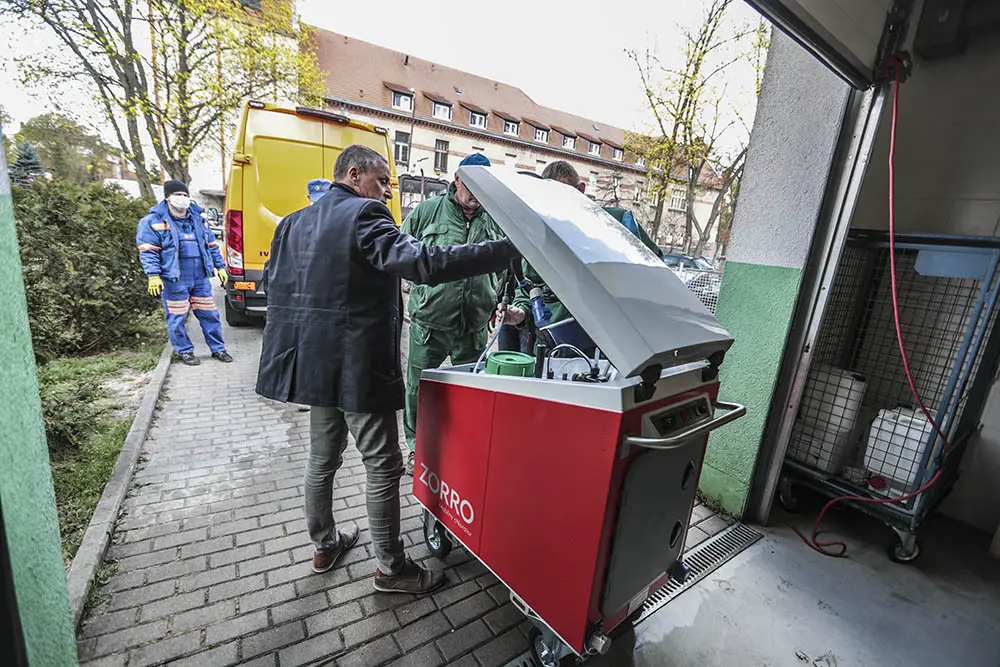 Oddział chorób zakaźnych zielonogórskiego szpitala ma stację dezynfekcji ścieków zakaźnych, ale już pozostałe oddziały, wyznaczone przez wojewodę lubuskiego na pobyt pacjentów z koronawirusem, jej nie mają. Budowa kolejnej komory do dezynfekcji trwałaby kilka miesięcy włączając w to wszystkie procedury budowlane i kosztowała pół miliona złotych. – Użyczyliśmy szpitalowi pompę dozującą środek do dezynfekcji ścieków, a konkretnie podchloryn sodu. Ścieki, które trafią do kanalizacji będą „czystsze”. Chodzi o to, aby zatrzymać bakterie i wirusy i tym samym zwiększyć bezpieczeństwo wszystkich zielonogórzan – wyjaśnia Krzysztof Witkowski, prezes ZWiK. Monika Turzańska z działu prasowego wodociągów dodała, że jedna pompa może wtłaczać do systemu odprowadzania ścieków, maksymalnie ok. siedmiu litrów płynu dezynfekującego.