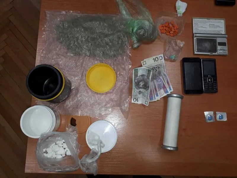 Operacyjne ustalenia kryminalnych okazały się trafne. W mieszkaniu znaleziono ponad 90 gramów marihuany, 63 gramy amfetaminy i 32 tabletki ecstasy. W mieszkaniu 34-latka były wagi elektroniczne i telefony komórkowe.