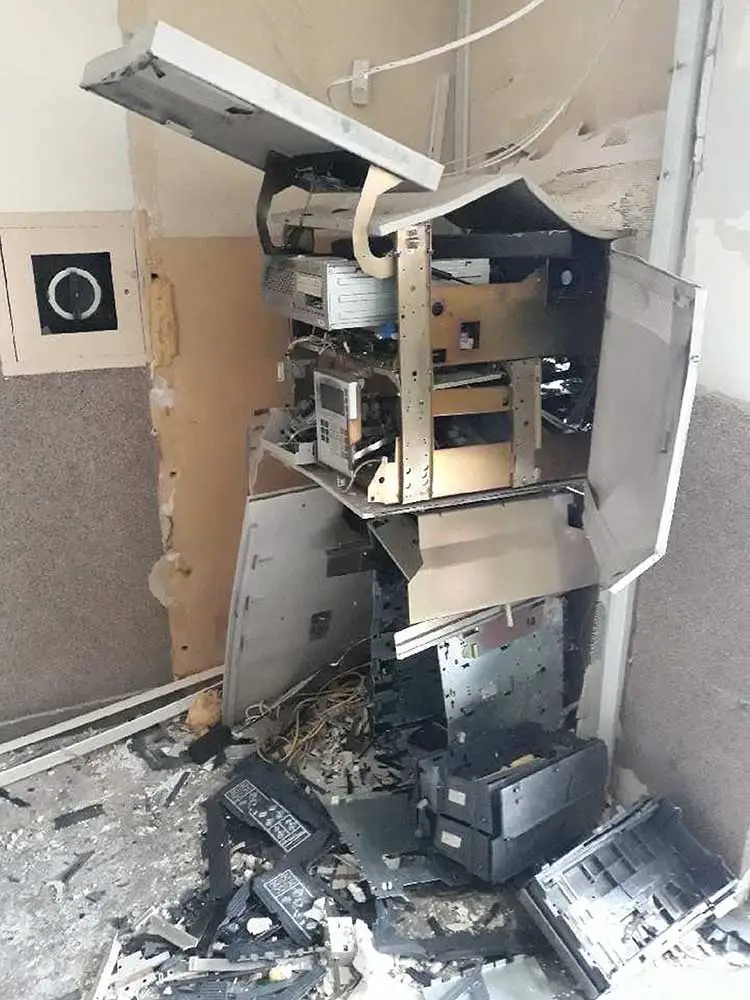 Z ustaleń policji wiadomo, że nieznane osoby pod osłoną nocy podłożyły ładunek wybuchowy pod bankomatem. Siła wybuchu była ogromna. Eksplozja doszczętnie zniszczyła maszynę oraz drzwi, okna i pomieszczenie banku. Sprawcy zabrali gotówkę z rozerwanego bankomatu.