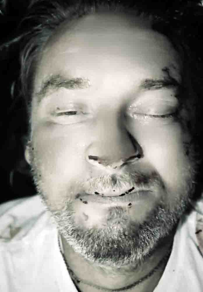 Mężczyzna miał tatuaż na lewym przedramieniu. Ubrany był w koszulkę t-shirt koloru czarnego z napisem „Jack Jones”, krótkie spodenki koloru czarnego z napisem „ diadora”, szaro-czarną kurtkę z napisem „ PLANAM” oraz czarno-szare buty za kostkę typu trekkingowego z napisem „STONEKIT”