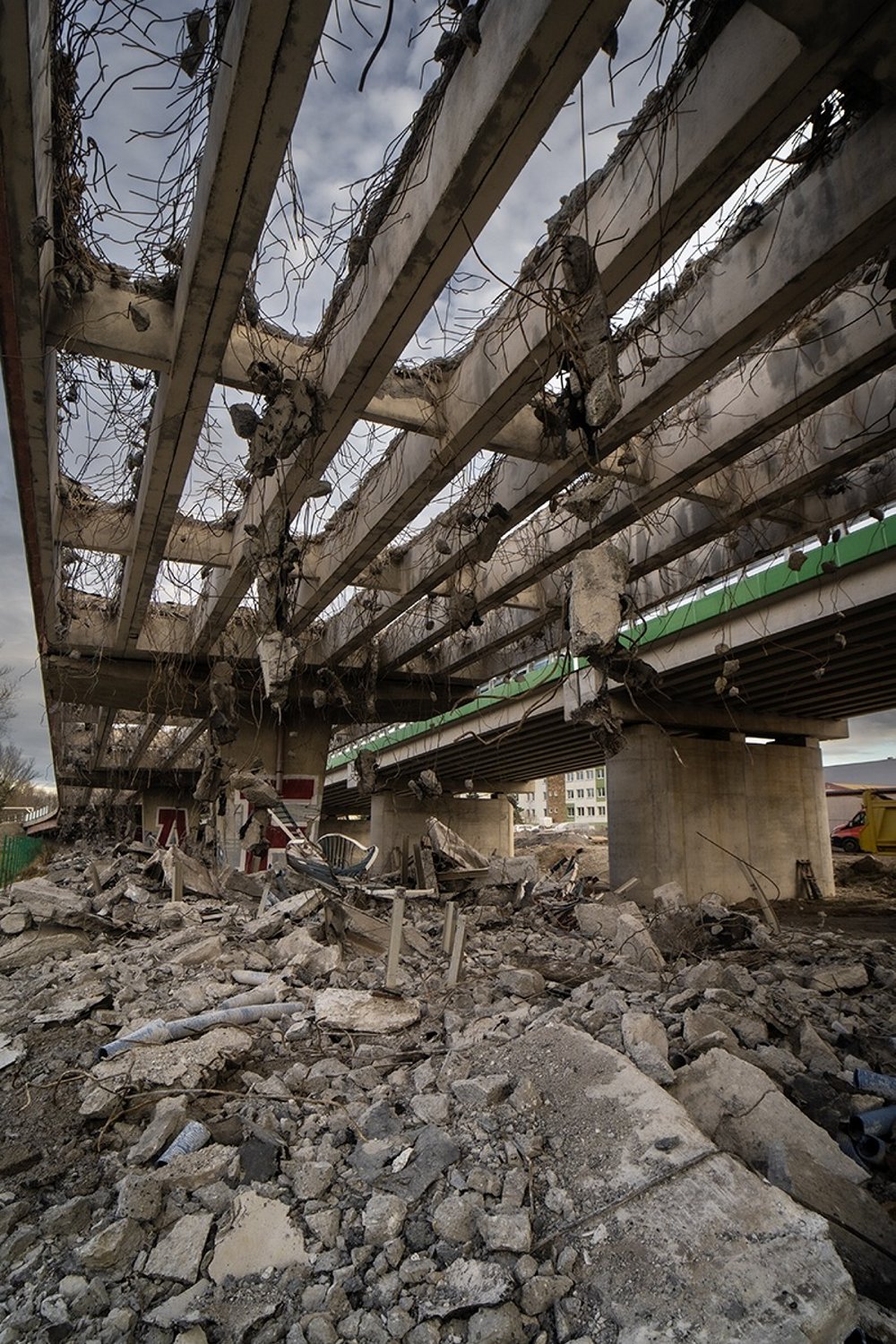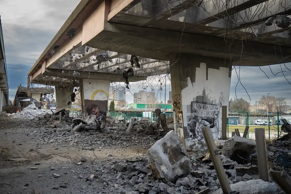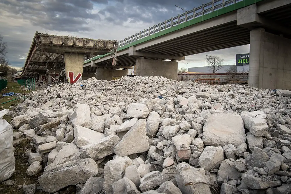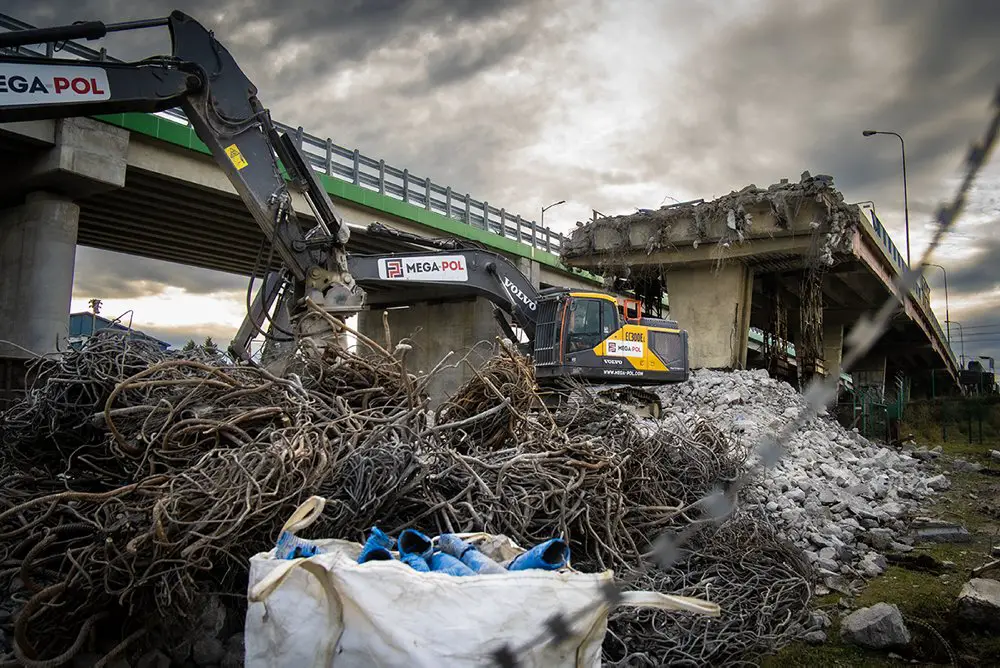 Prace rozbiórkowe na zachodniej nitce wiaduktu (w kierunku ronda PCK) już widać. Krajobraz jest wręcz apokaliptyczny, ale za to w 2026 r. skorzystamy z odnowionego obiektu. Wykonawcą inwestycji jest firma Nowak-Mosty z Dąbrowy Górniczej.