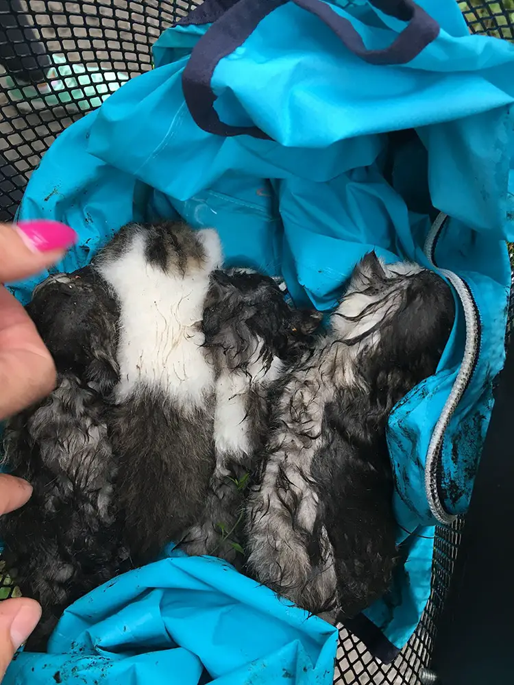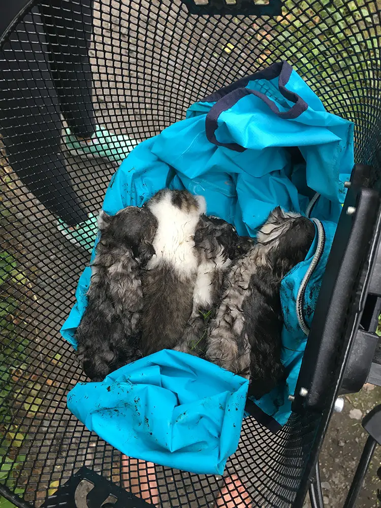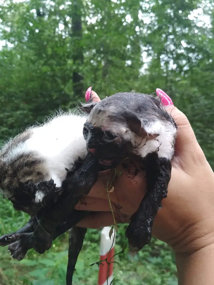 Nasz Czytelnik Mateusz był na przejażdżce rowerowej z dziewczyną. Wyjeżdżając z lasu na ul. Dolna w Krępej w przepuście rzecznym usłyszał piski kociąt. Kiedy podszedł do błota przy rzece zauważył tam maleńkie kocięta. Natychmiast ruszył im na ratunek. Wyciągnął z błota razem z dziewczyną cztery maleńkie, jeszcze ślepe kocięta.